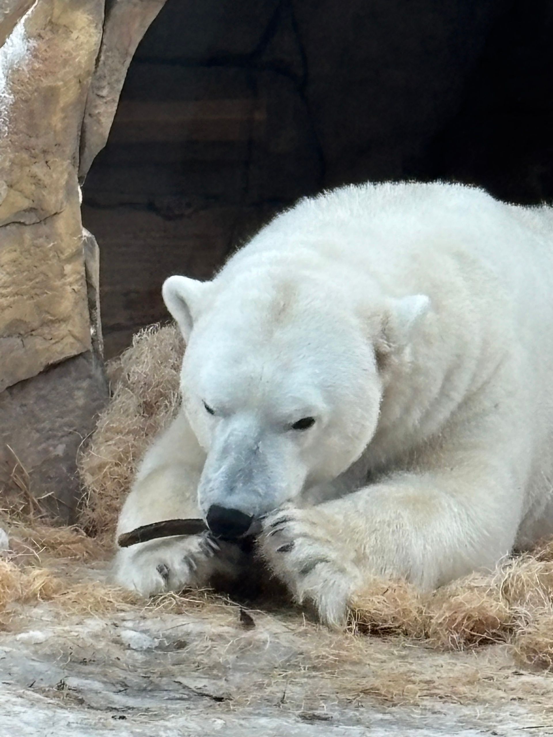 Well, at least this weather is fantastic for polar bears. This is Siku enjoying a good stick.